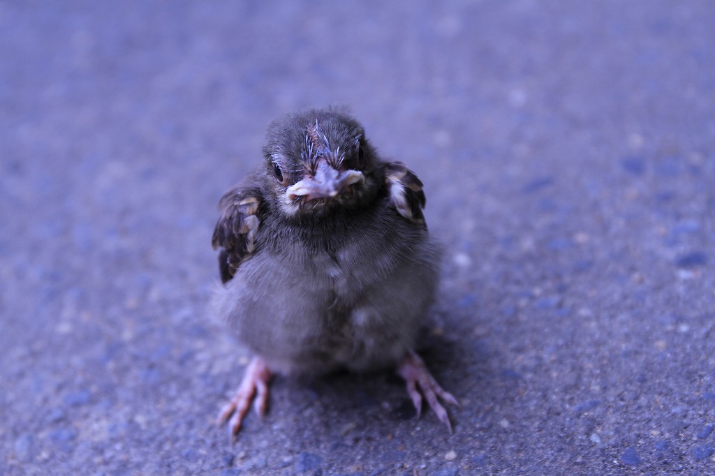 巣から落ちたのか、親鳥がそばでピ−ピ−ないています。